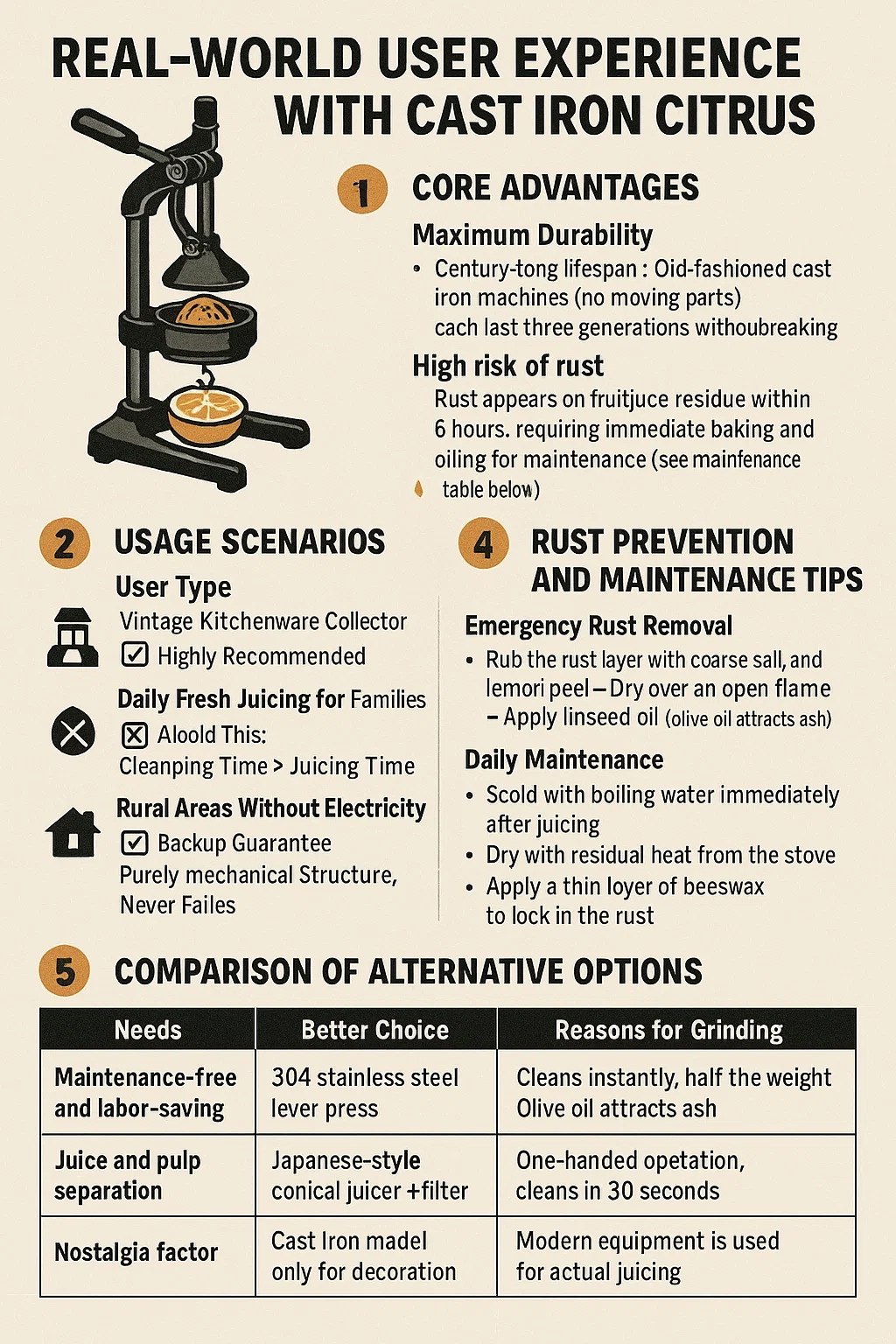 Echte Benutzererfahrung mit einem Gusseisen Zitruspresse :