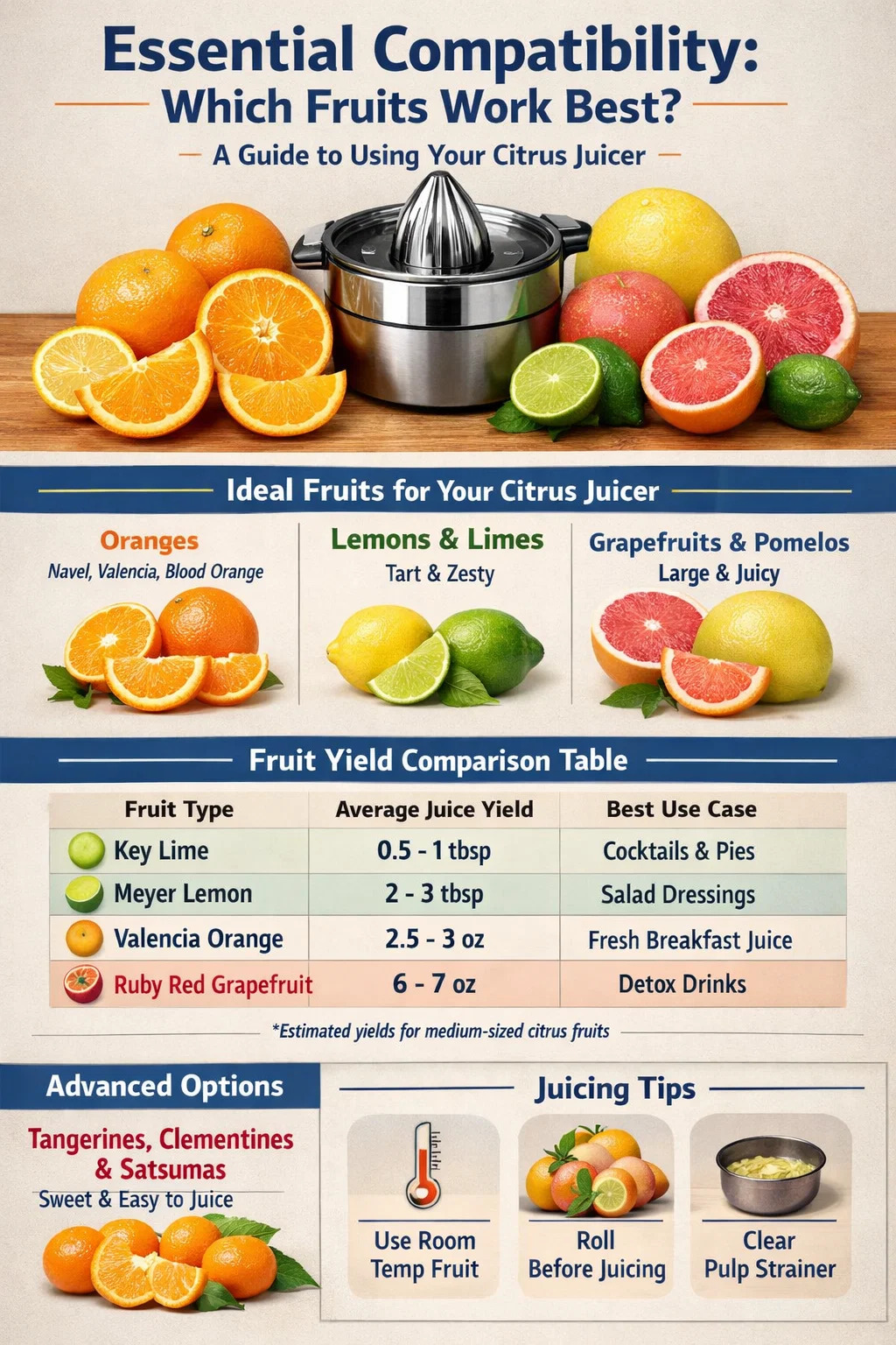 | Fruchttyp | Durchschnittliche Saftausbeute | Bester Anwendungsfall |